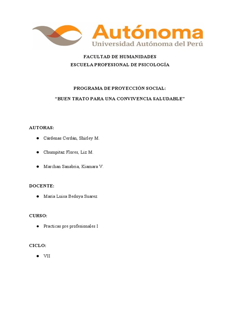 PROGRAMA DE PROYECCIÓN SOCIAL: