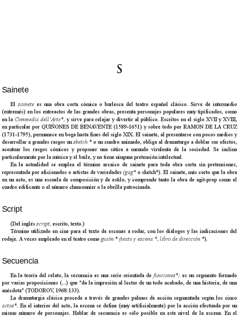 XIX se hablaba del corte de un texto dramático: forma en que se construía y se dividía concretamente.