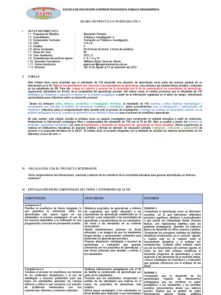 Sílabo de Práctica Einvestigación V Williams
