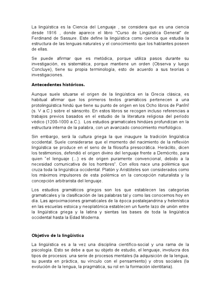 La lingüística es la Ciencia del Lenguaje , se considera que es una ciencia