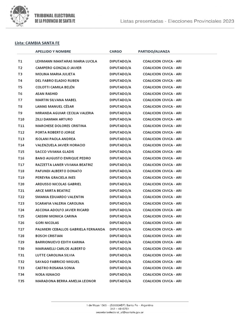 APELLIDO Y NOMBRE CARGO PARTIDO/ALIANZA