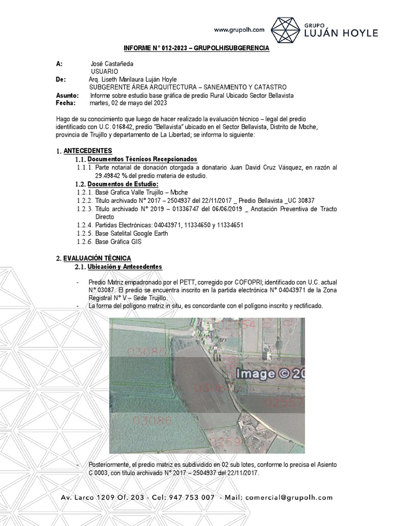 - Cabe precisar, que el predio materia de estudio está ubicado dentro de la U.C. N° 016842.