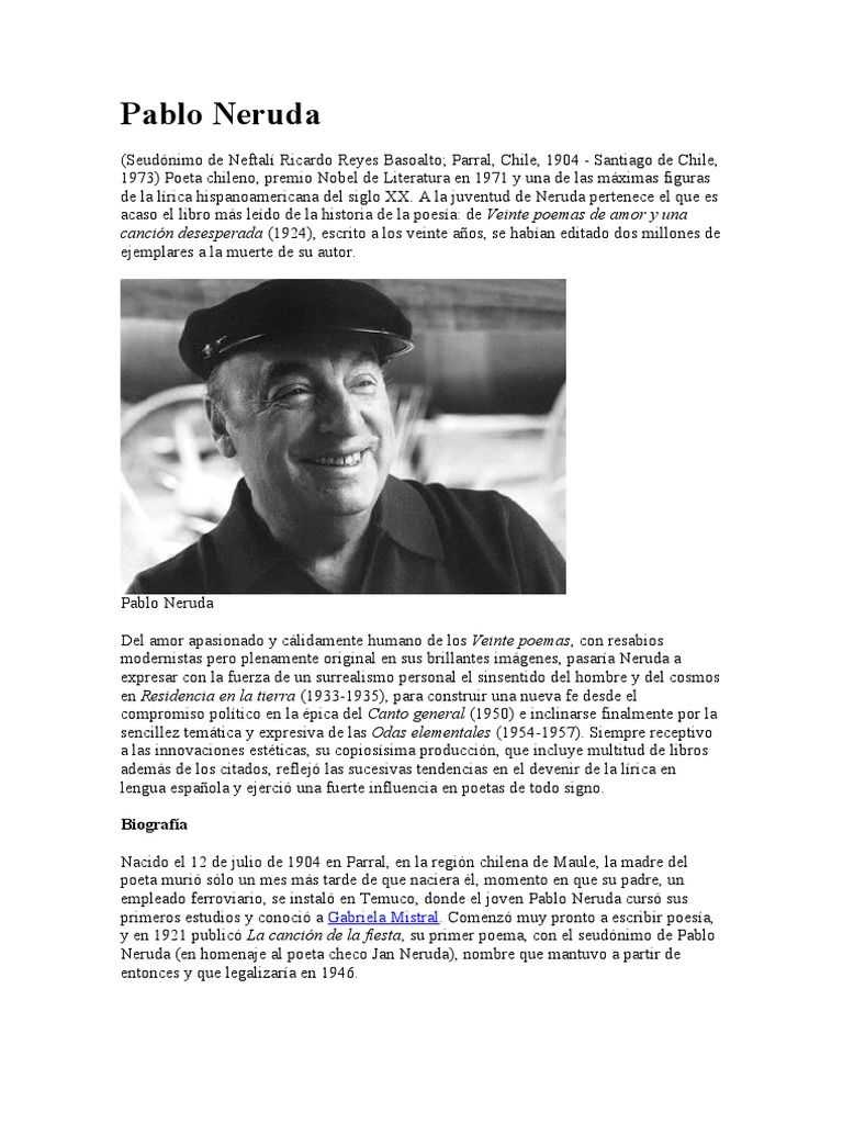 de la lírica hispanoamericana del siglo XX. A la juventud de Neruda pertenece el que es