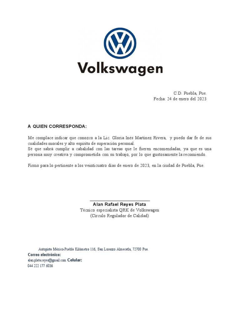 Me complace indicar que conozco a la Lic. Gloria Inés Martínez Rivera, y puedo dar fe de sus