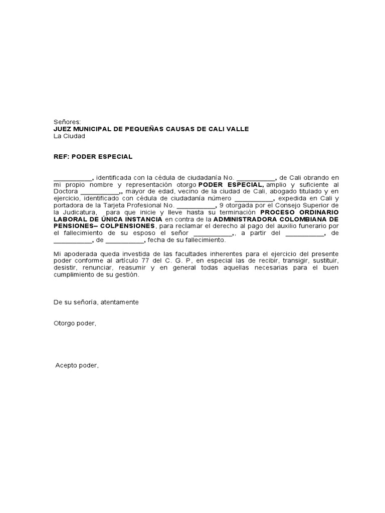 Doctora __________,, mayor de edad, vecino de la ciudad de Cali, abogado titulado y en