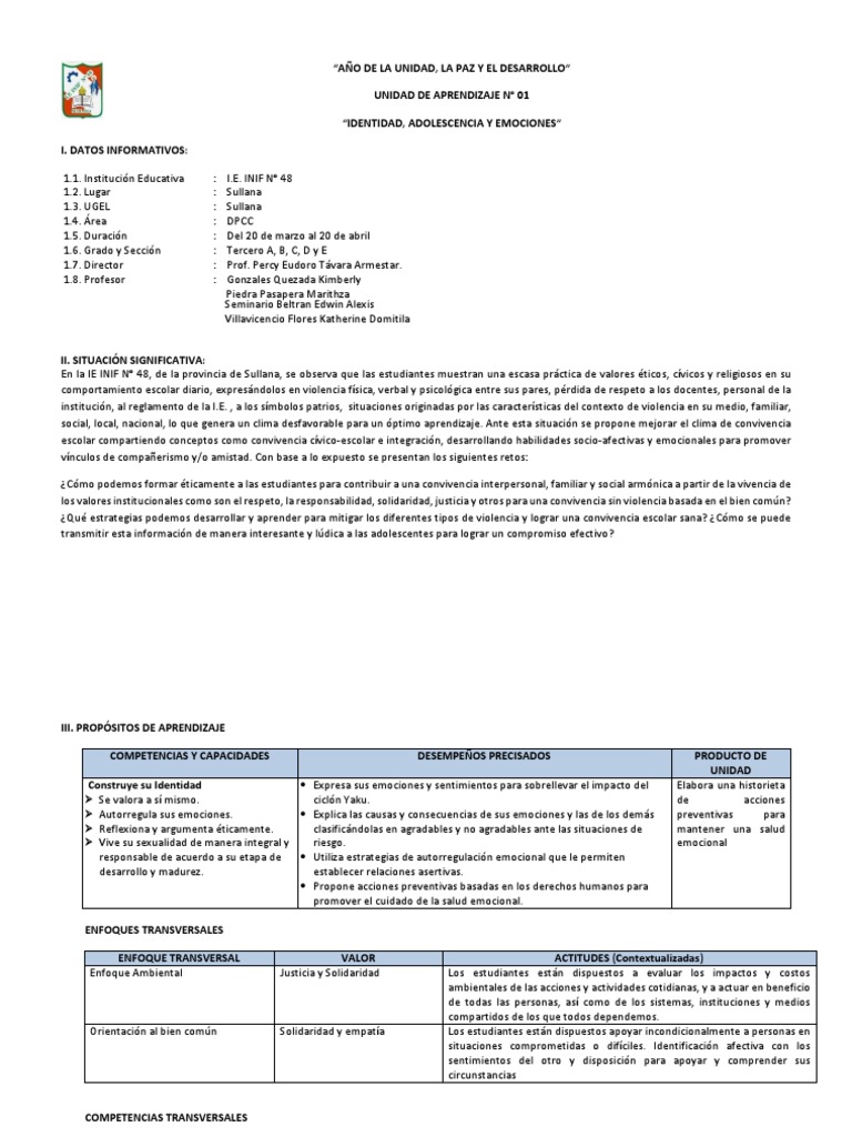 1.6. Grado y Sección : Tercero A, B, C, D y E