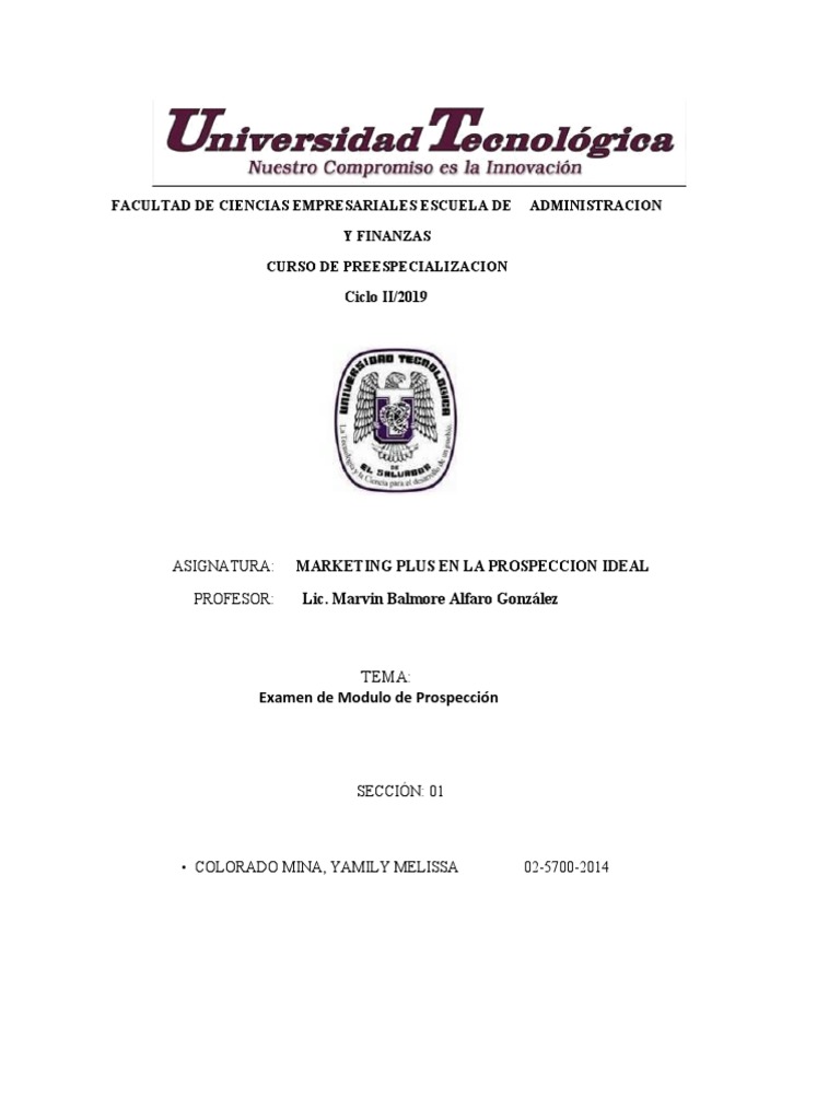 ASIGNATURA: MARKETING PLUS EN LA PROSPECCION IDEAL