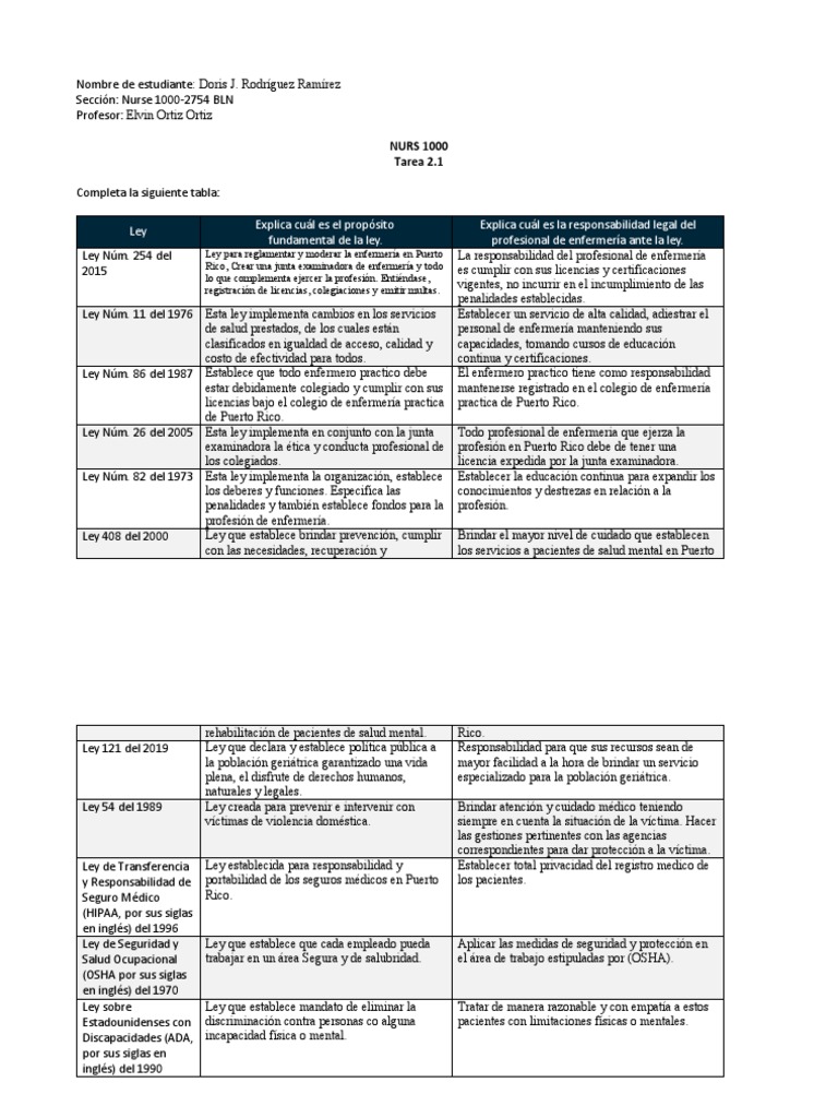 Ley Núm. 254 del Ley para reglamentar y moderar la enfermería en Puerto La responsabilidad del profesional de enfermería