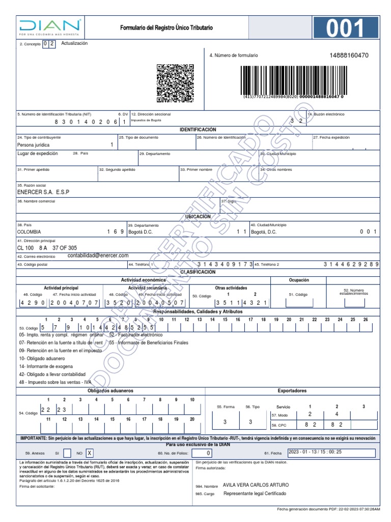 IMPORTANTE: Sin perjuicio de las actualizaciones a que haya lugar, la inscripción en el Registro Único Tributario -RUT-, tendrá vigencia indefinida y en consecuencia no se exigirá su renovación