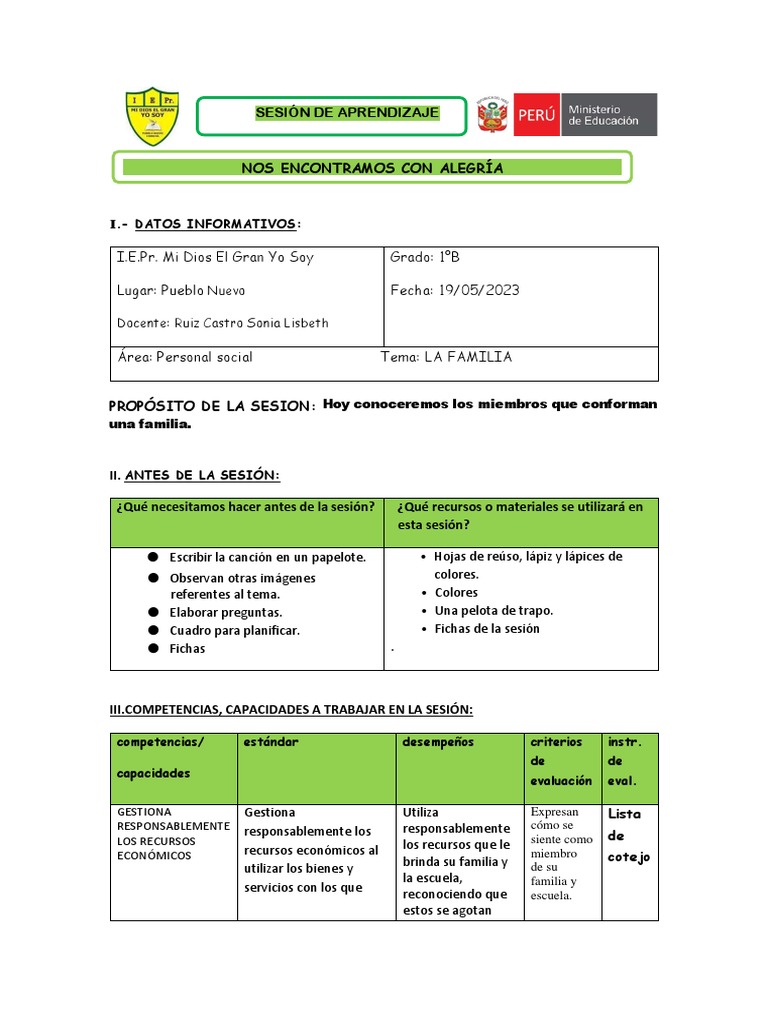 SESIÓN DE APRENDIZAJE
