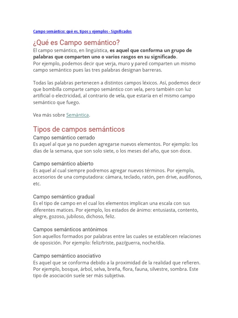 Campo semántico: qué es, tipos y ejemplos - Significados