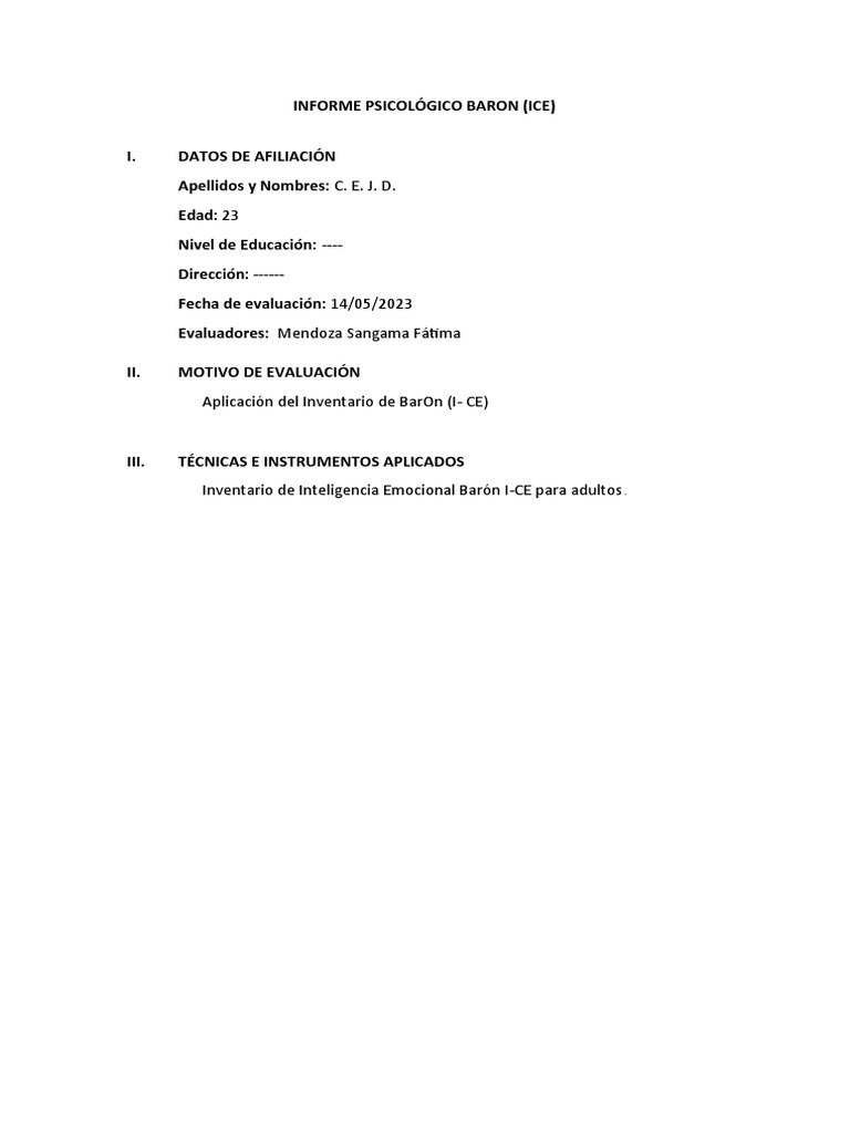 INFORME PSICOLÓGICO BARON (ICE)