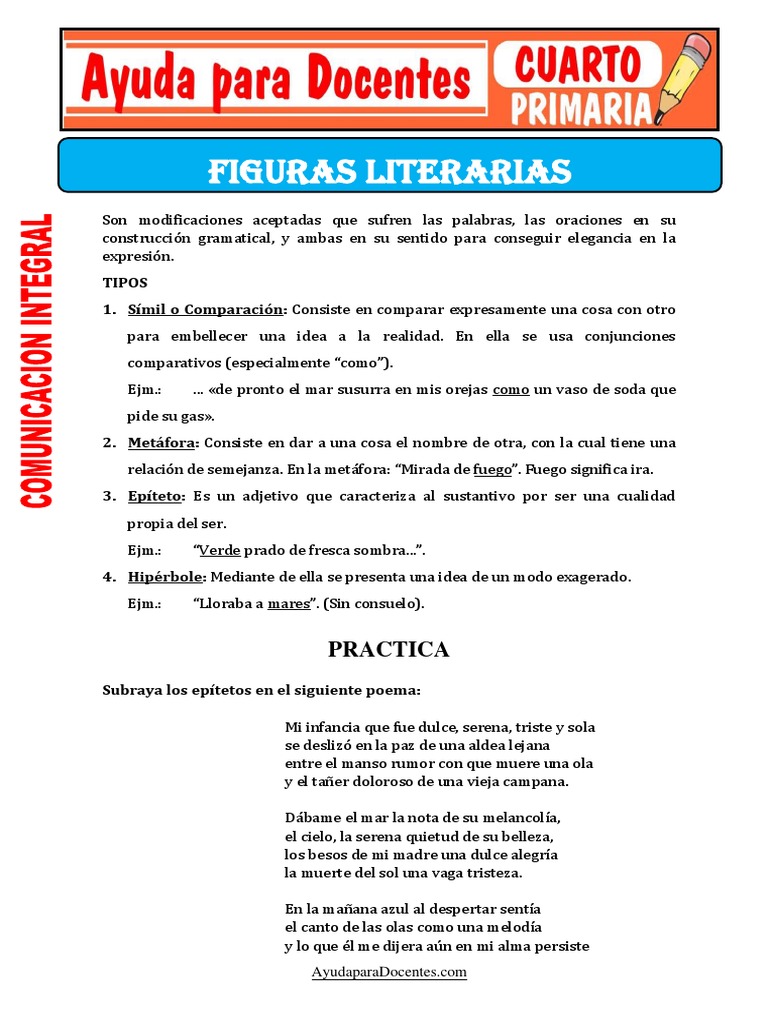 Escribe al costado qué clase de figura literaria se presenta (Metáfora,