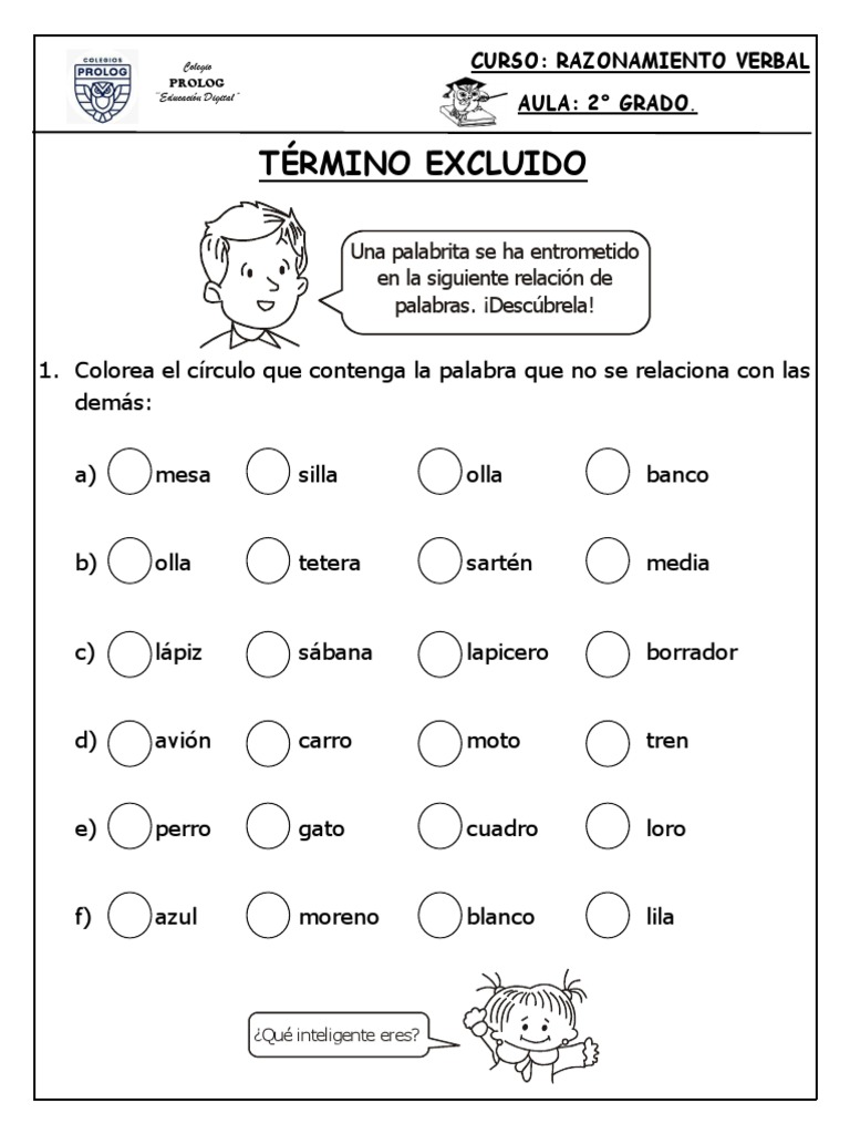 1. Colorea el círculo que contenga la palabra que no se relaciona con las