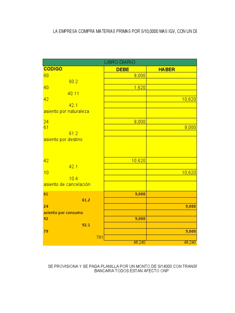 LA EMPRESA COMPRA MATERIAS PRIMAS POR S/10,0000 MAS IGV, CON UN DESCUENTO DEL 10% P