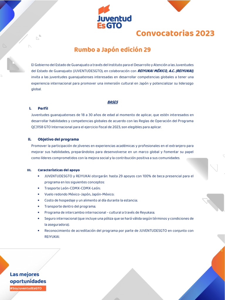 • JUVENTUDESGTO y REIYUKAI otorgarán: hasta 29 apoyos con 100% de beca presencial para el