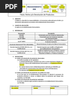 Formato de Registro de Devolución y/o Retiro de productos farmacéuticos y afines.