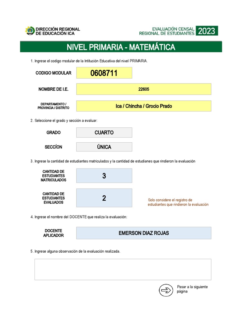3. Ingrese la cantidad de estudiantes matriculados y la cantidad de estudianes que rindieron la evaluación