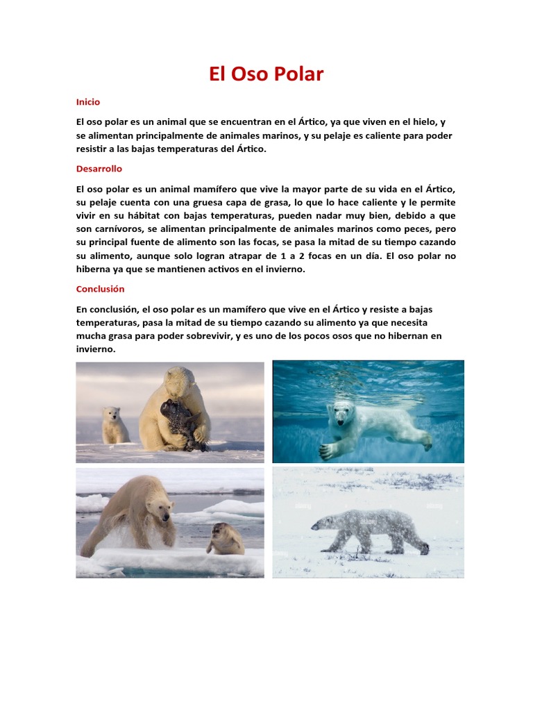 En conclusión, el oso polar es un mamífero que vive en el Ártico y resiste a bajas