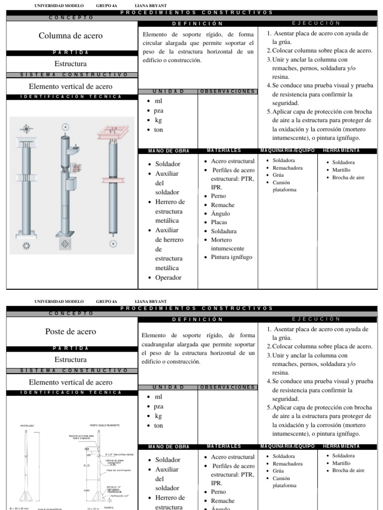 el peso de la estructura horizontal de un 3. Unir y anclar la columna con
