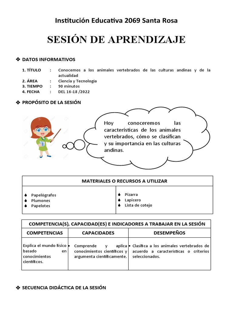 1. TÍTULO : Conocemos a los animales vertebrados de las culturas andinas y de la
