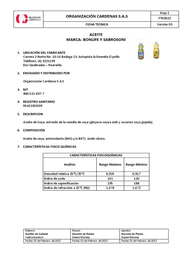 FICHA TECNICA Versión 03