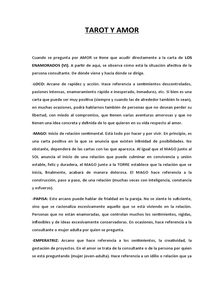 -FUERZA: Carta que hace referencia a la pasión y a la intensidad en el amor. Pareja o