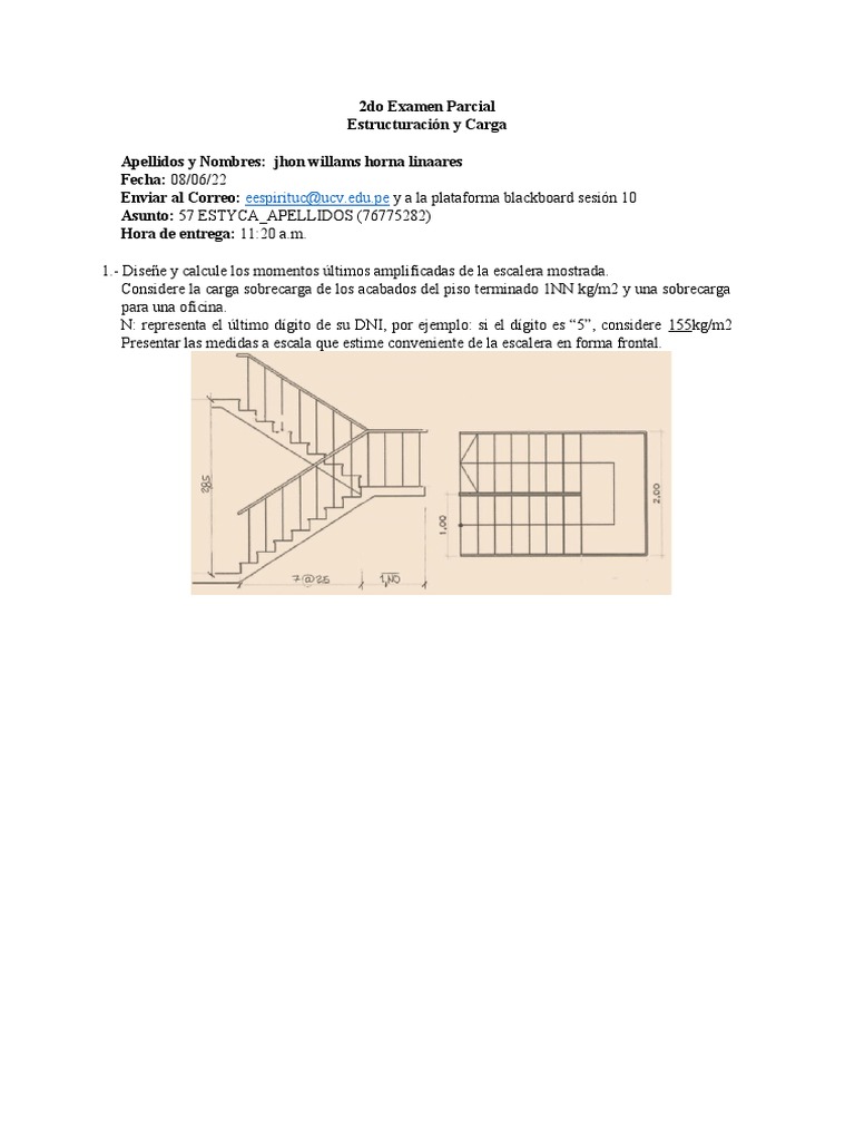 2.- Diseñe los momentos últimos que actúan en la escalera considerando su criterio de