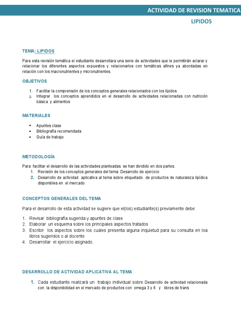 2. Desarrollo de actividad aplicativa al tema sobre etiquetado de productos de naturaleza lipídica