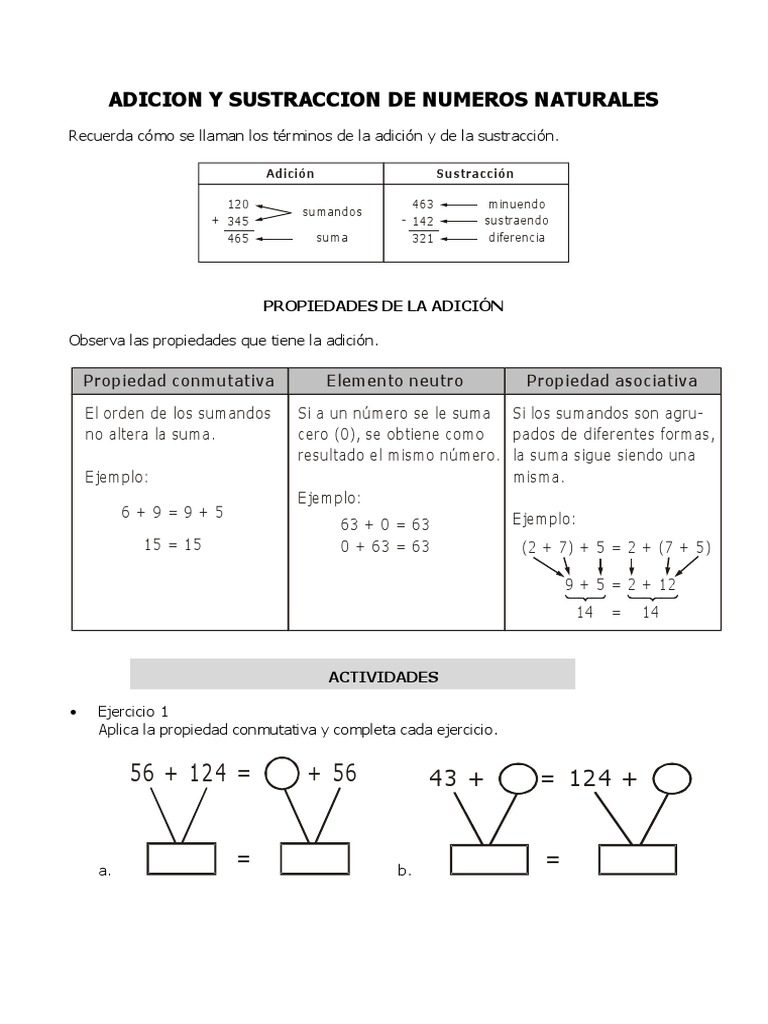 ADICION Y SUSTRACCION DE NUMEROS NATURALES