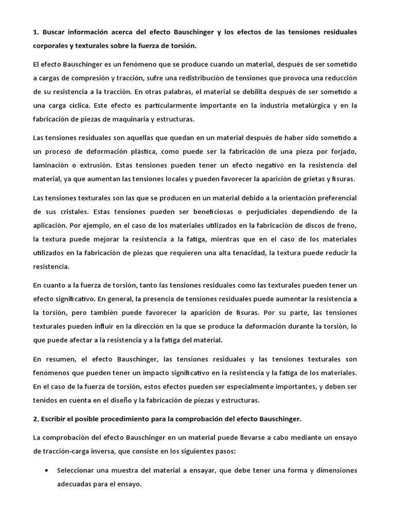 2. Escribir el posible procedimiento para la comprobación del efecto Bauschinger.