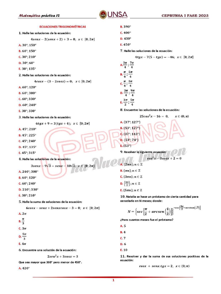 Matematica practica 12 CEPRUNSA I FASE 2023