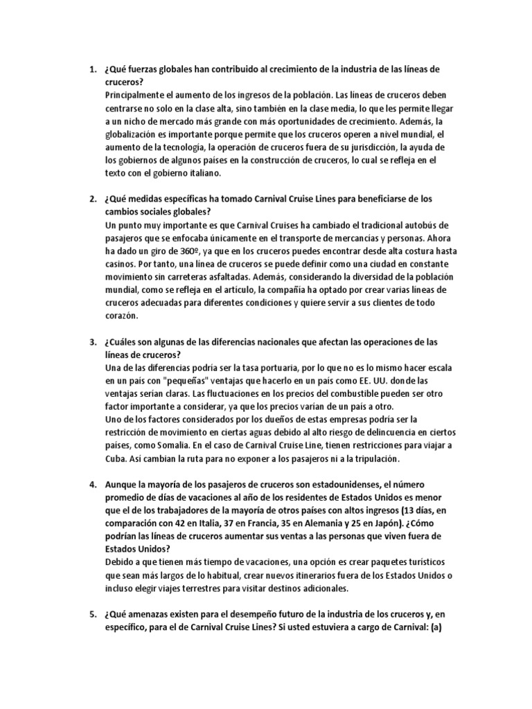 específico, para el de Carnival Cruise Lines? Si usted estuviera a cargo de Carnival: (a)