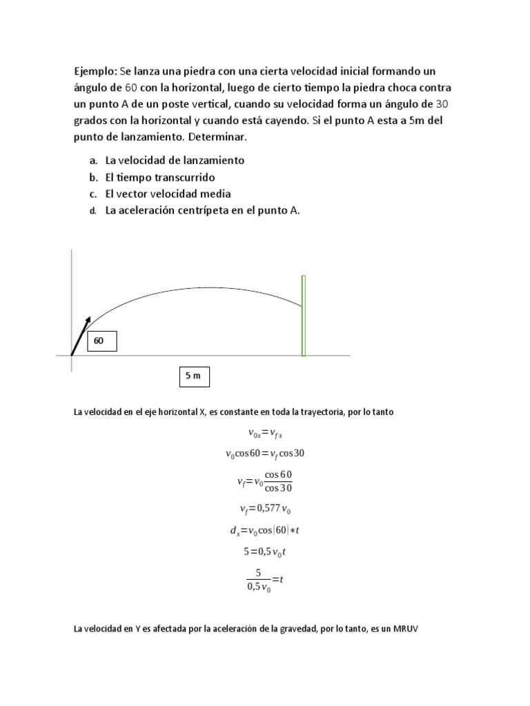 Ejemplo: Se lanza una piedra con una cierta velocidad inicial formando un