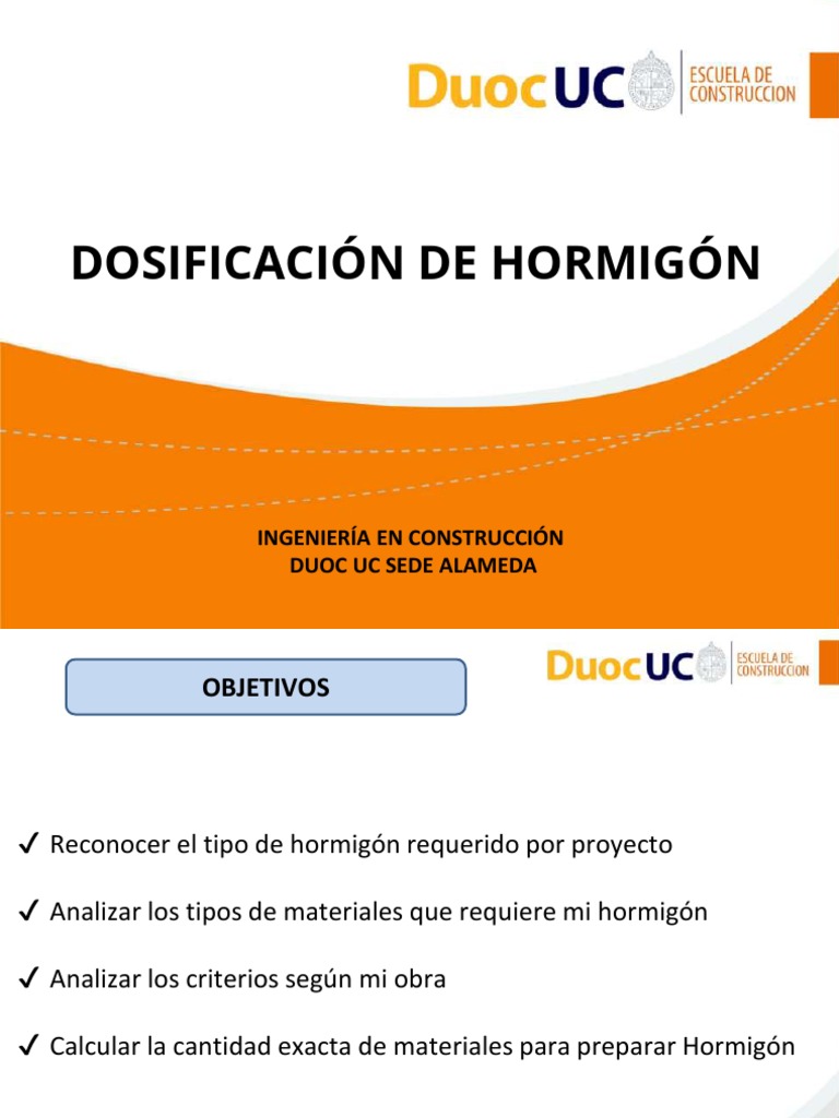✔ Reconocer el tipo de hormigón requerido por proyecto