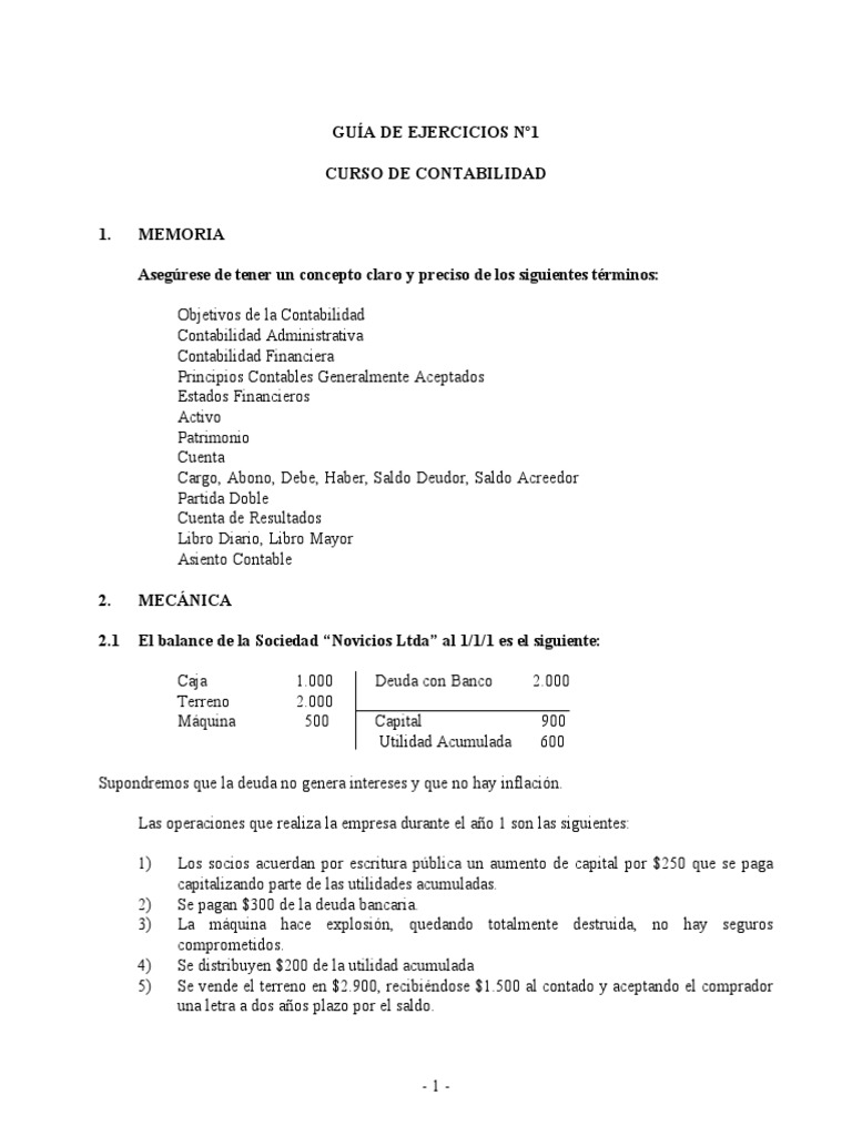 2.1 El balance de la Sociedad “Novicios Ltda” al 1/1/1 es el siguiente: