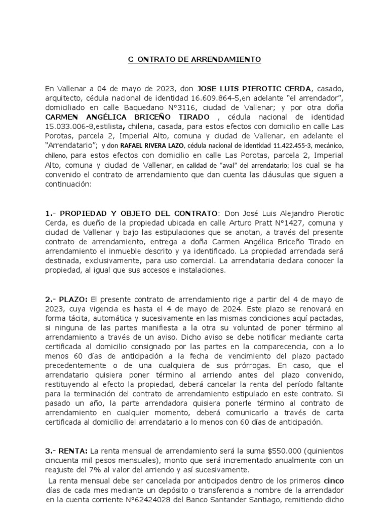 C ONTRATO DE ARRENDAMIENTO