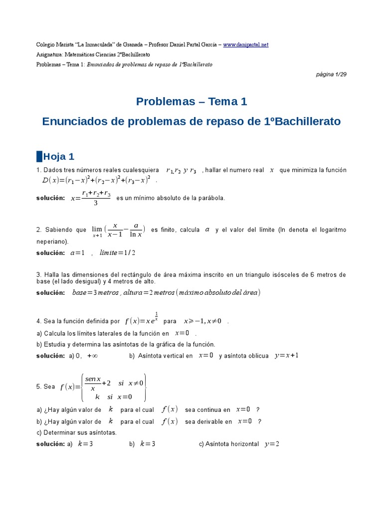 Problemas – Tema 1: Enunciados de problemas de repaso de 1ºBachillerato