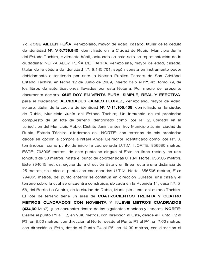 Yo, JOSE AILLEN PEÑA, venezolano, mayor de edad, casado, titular de la cédula