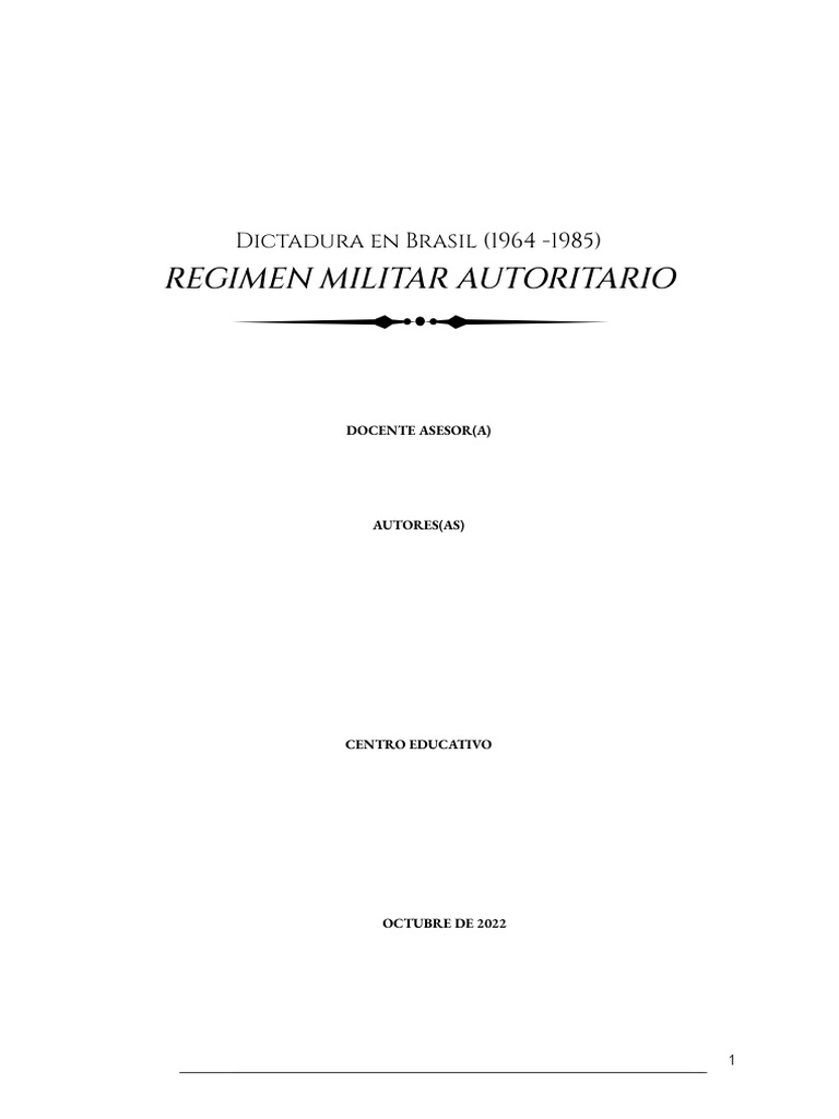 This monograph develops a reflection on the Military and Civil Regime that held power in