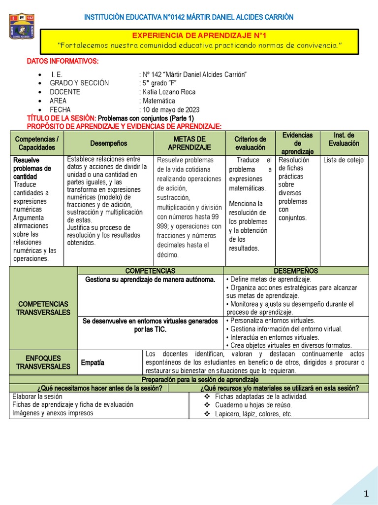 EXPERIENCIA DE APRENDIZAJE N°1