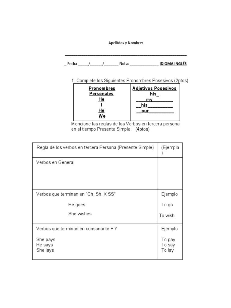 _ Fecha _____/______/_______ Nota: ______________ IDIOMA INGLÉS