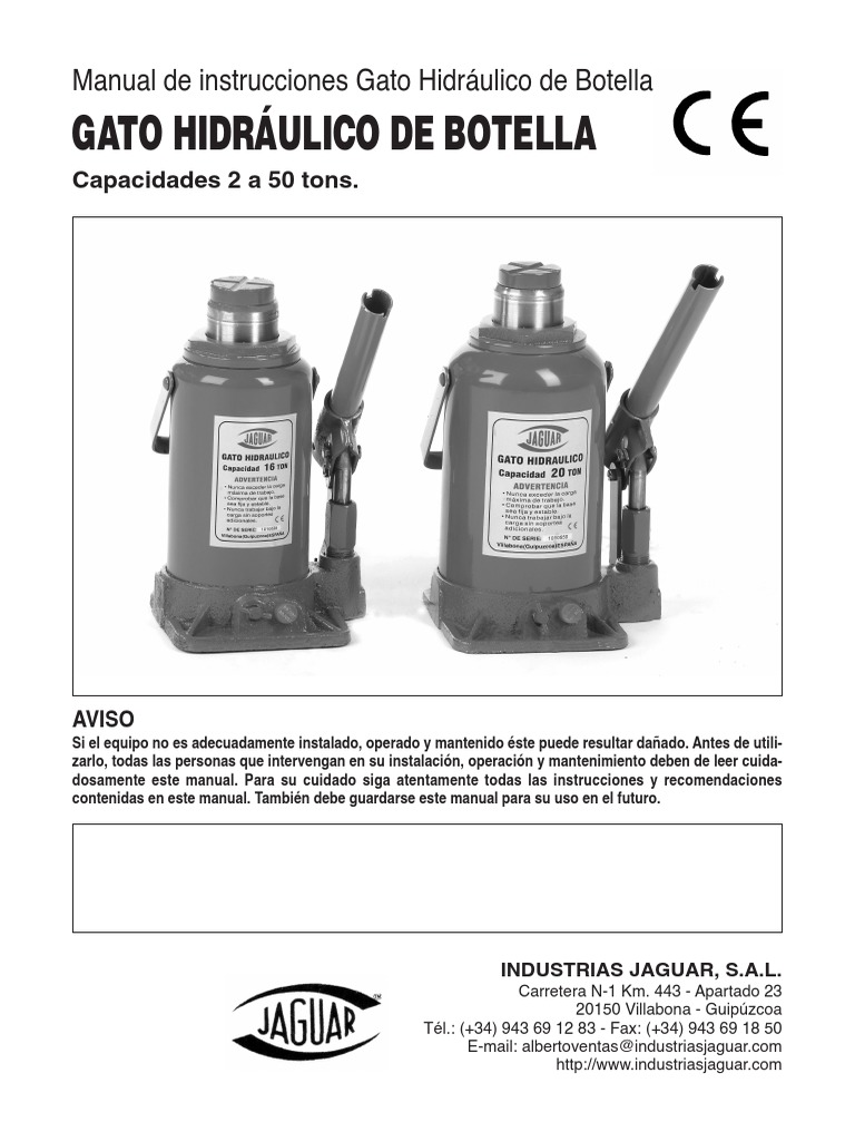 El Gato Hidráulico de Botella “Jaguar” está fabricado y probado según la Directiva de Máqui-