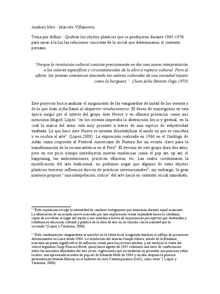 Este proyecto busca analizar el surgimiento de las vanguardias de mitad de los sesenta y