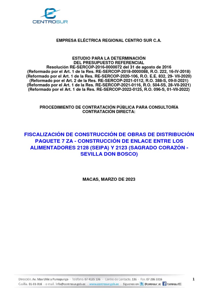 ESTUDIO PARA LA DETERMINACIÓN DEL PRESUPUESTO REFERENCIAL