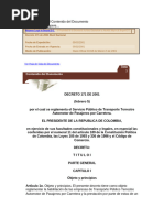 el Ministerio de Transporte profirió el Decreto 2762 de 2001, por el cual se reglamentó la