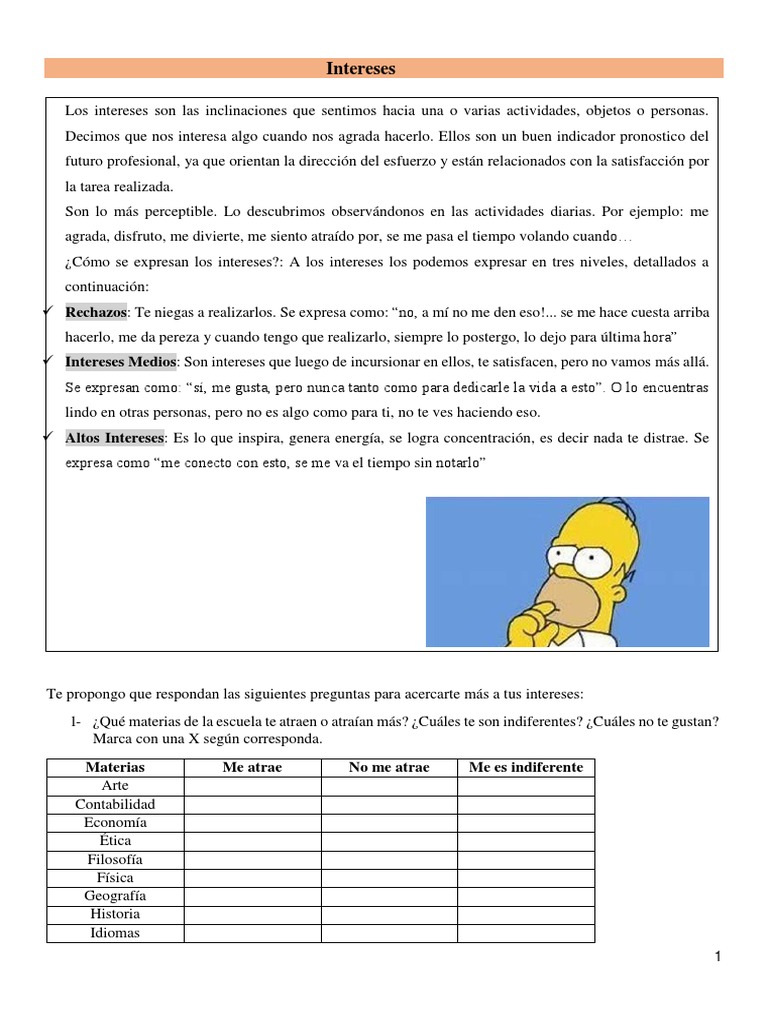 1- ¿Qué materias de la escuela te atraen o atraían más? ¿Cuáles te son indiferentes? ¿Cuáles no te gustan?