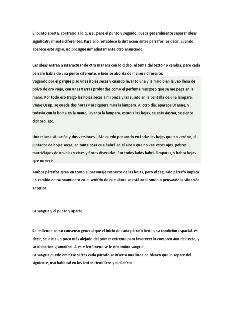 punto aparte, contrario a lo que sugiere el punto y seguido, busca generalmente separar ideas