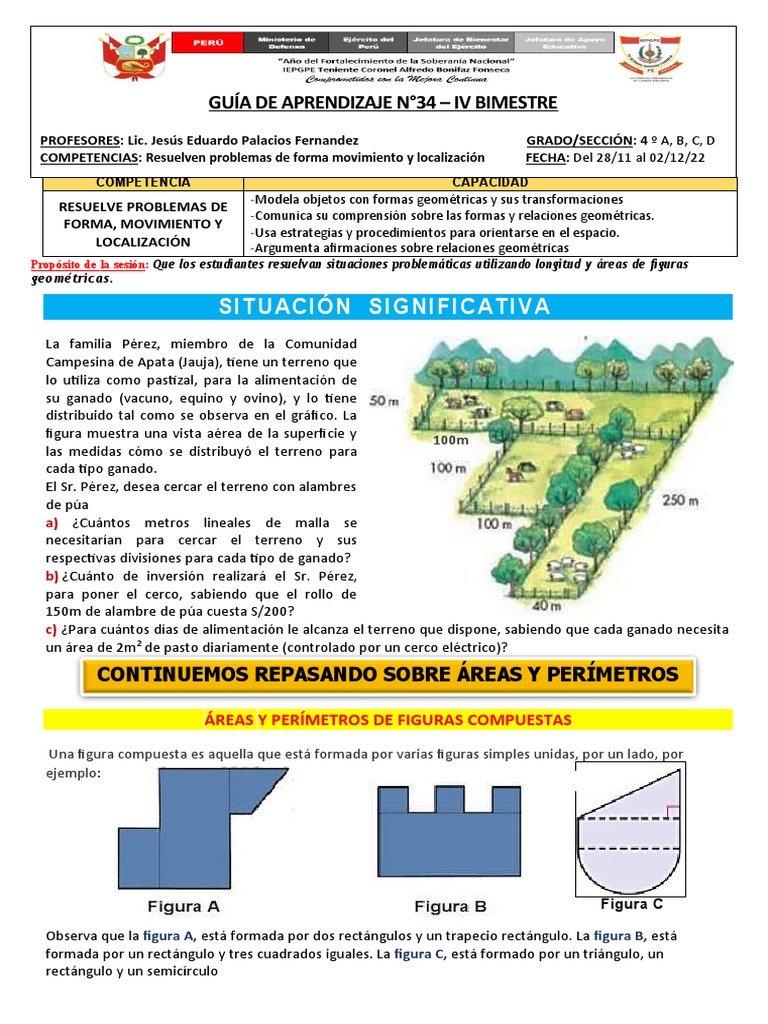 Propósito de la sesión: Que los estudiantes resuelvan situaciones problemáticas utilizando longitud y áreas de figuras
