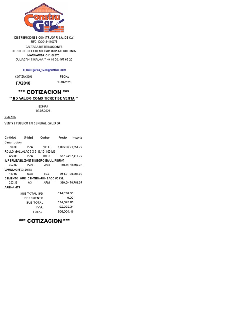 DISTRIBUCIONES CONSTRUGAR S.A. DE C.V.